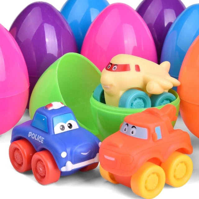 Kid Racers - start your engines! The Cartoon Car kid's cars are ready-made for hitting the road with speed and smiles.. look over there! Kid Racer, have your pick of these Rollin’ Cartoon Racers - there are a dozen car toys all at Kid Racer’s disposal. This amazing kid racing bundle provides 18 Pull Back car toys, so gather ‘round family and friends for a race that’ll entertain the whole crew. Each toy car is built with the latest friction-powered technology - simply pull ‘em back and watch ‘em race! Pick your flat-alleyed avenue, whether it’s the dinner table, smooth flooring, or even your neighborhood street - any choice makes for a race that’s guaranteed all speed. Cartoon Car kid's cars measure 2.4” inches in premium quality car length, painted in the brightest colors around. Invest in this amazingly affordable set and you’ll draw a crowd fit for the finest racers in town! The product comes packed with an additional egg-citing surprise - so keep those eyes peeled for an extra prize: 18 treasure eggs packed inside!